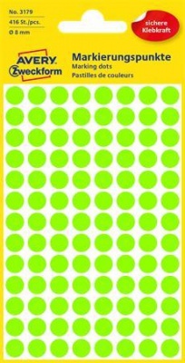 Etikety, okrúhle, priemer: 8 mm, AVERY ZWECKFORM, neónovo zelené, 416 etikiet/bal